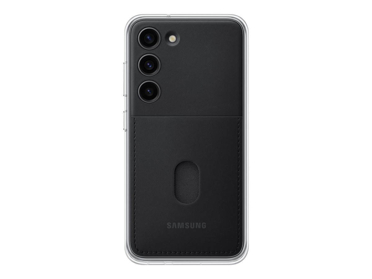 smartphone Samsung preto com três câmaras traseiras e capa protetora