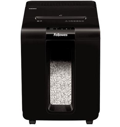 Fragmentadora de papel preta Fellowes 100M com visor de papel triturado