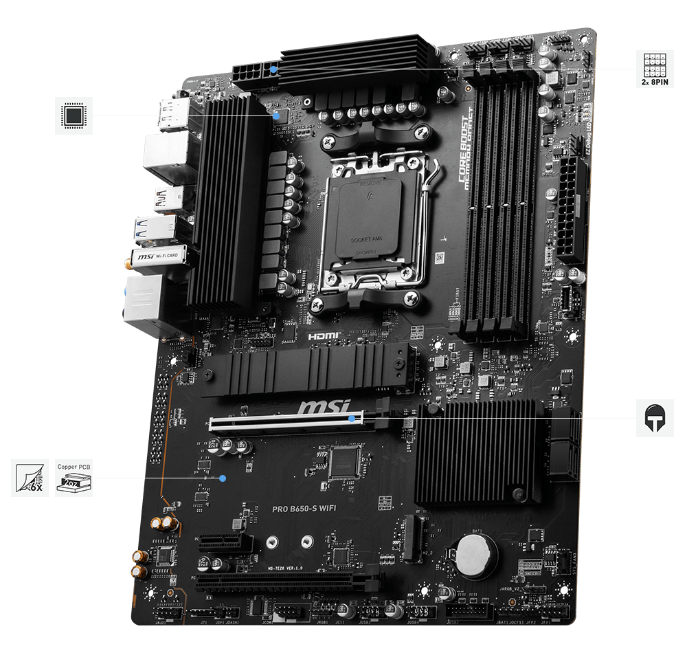 MSI PRO B650-S WIFI AM5 ATX MB 4xDDR5 4xSATA 2xM.2