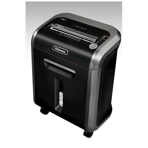 Trituradora de papel preta com detalhes cinzentos marca Fellowes