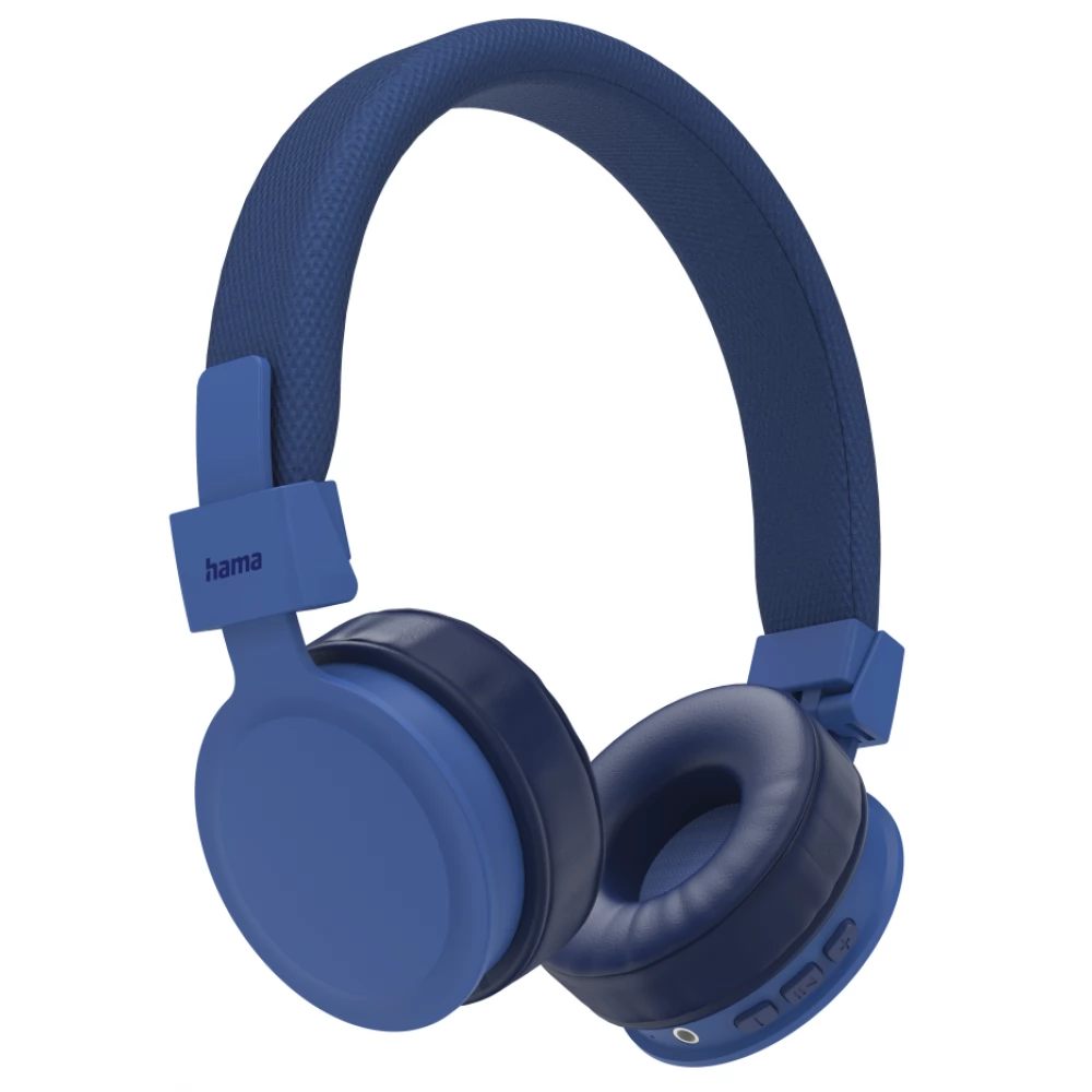 Auriculares azuis over-ear da marca Hama com ponte e almofadas acolchoadas