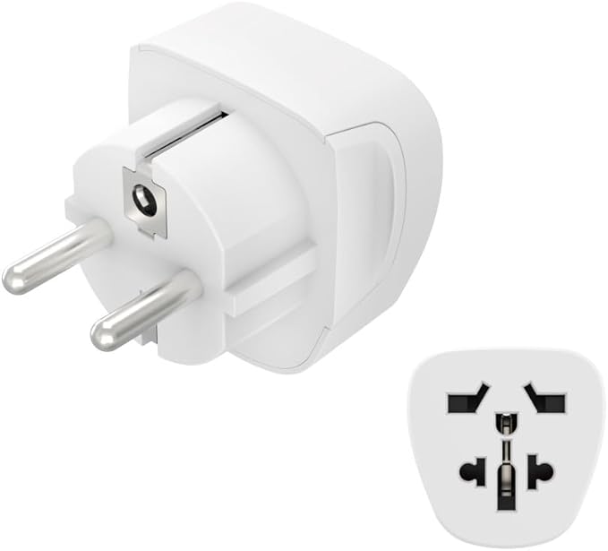 Adaptador de tomada universal branco com pinos metálicos redondos