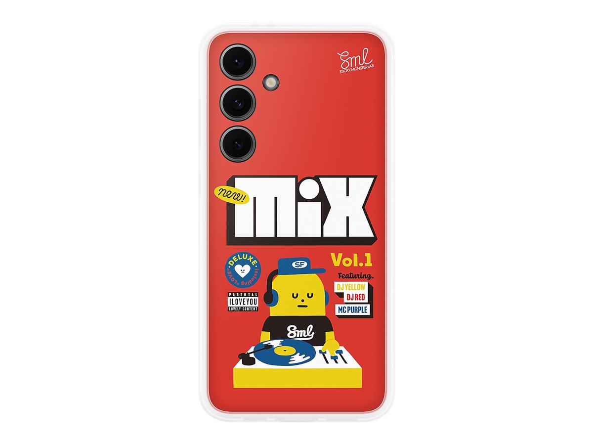 Capa de telemóvel vermelha com design gráfico colorido e texto MIX Vol.1