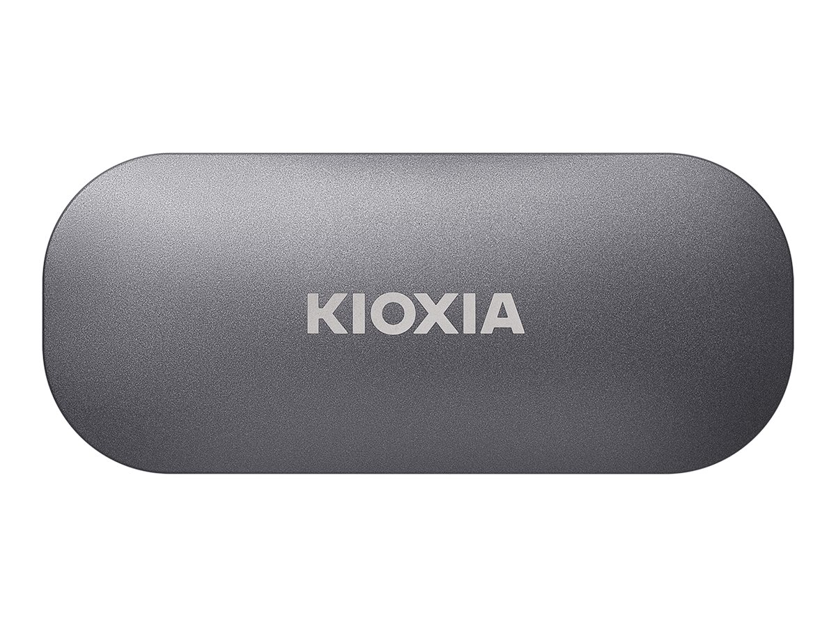 Caixa retangular cinza escuro com a palavra KIOXIA ao centro