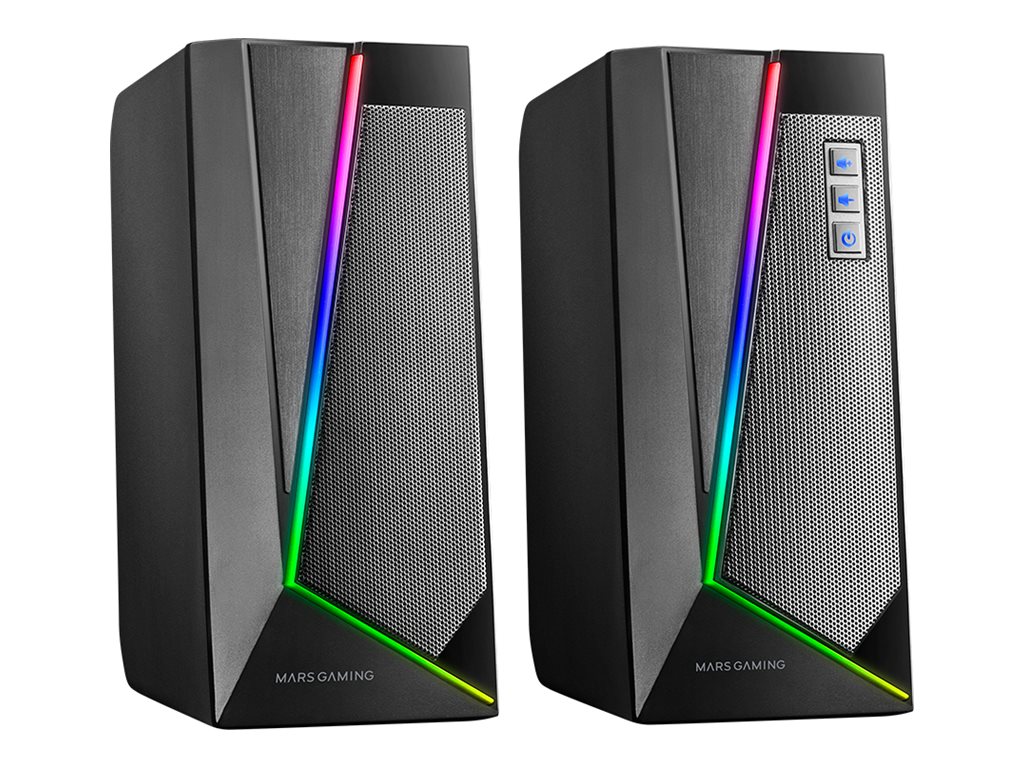 Par de colunas Mars Gaming com luzes LED coloridas e grelha metálica