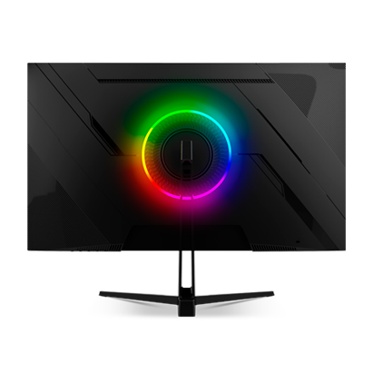 Monitor preto com luz RGB circular na parte traseira
