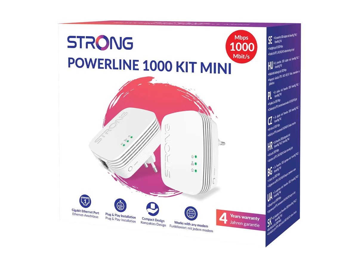 Kit adaptadores Powerline Strong 1000 Kit Mini embalagem com texto e imagem do produto
