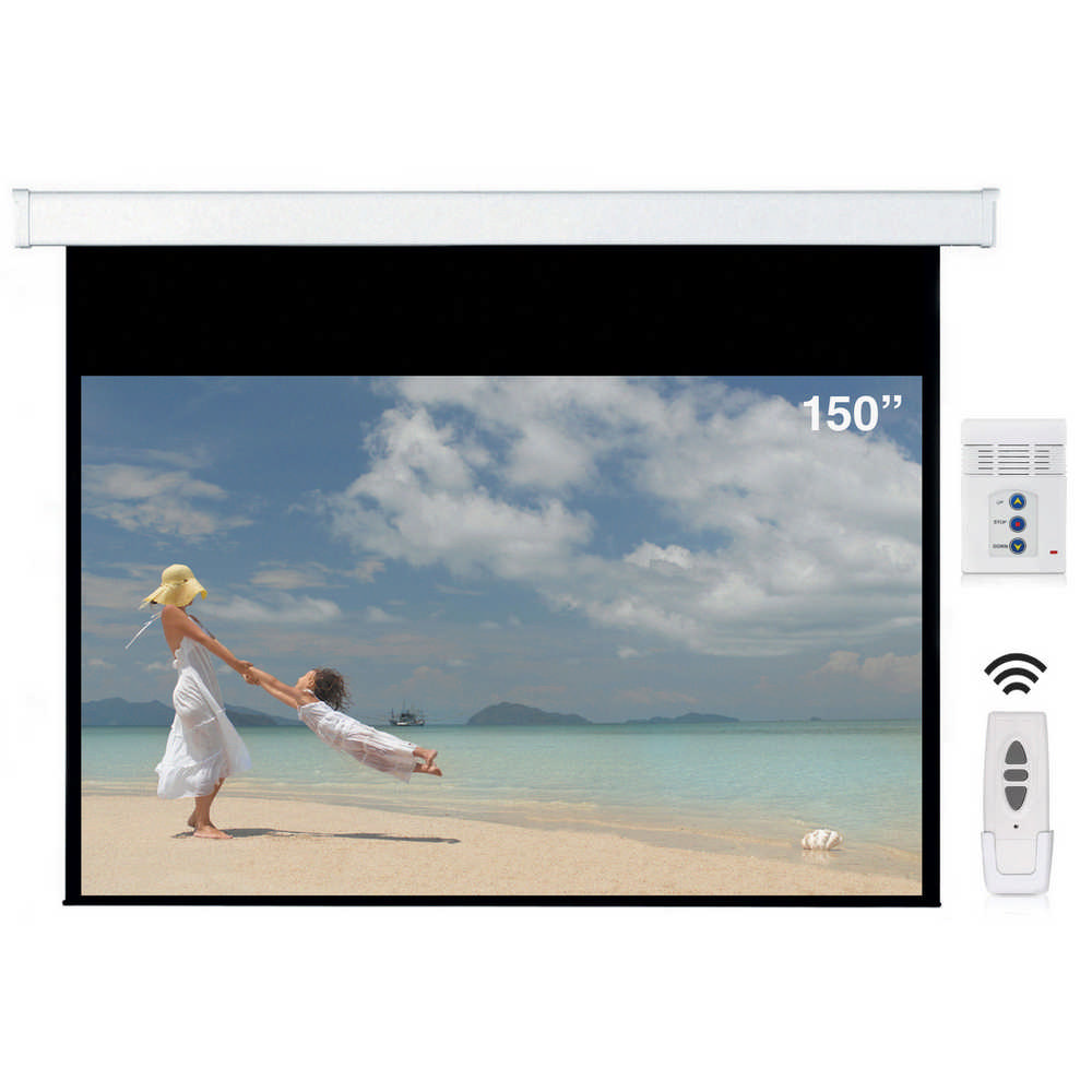 Ecrã projeção retrátil branco 150 polegadas com controlo remoto e painel