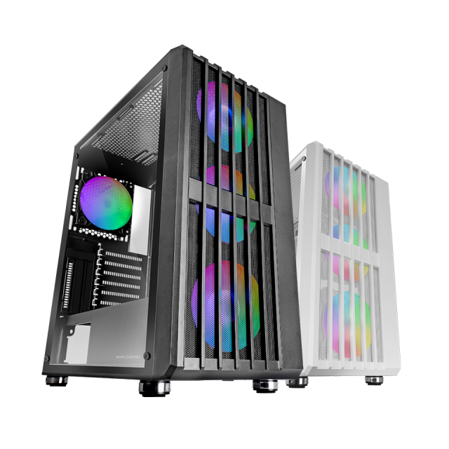 MARS GAMING MC-VAULT ATX COMPUTER CASE 4X120MM ARGB FANS OPEN FRONT MESH TEMPERED GLASS SIDE PANEL RGB MB & CONTROLLERS COMPATIBLE B