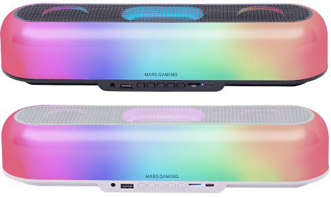 Colunas de som Mars Gaming com iluminação RGB em plástico preto e branco