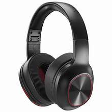 Auriculares sem fios pretos com detalhes vermelhos e acabamento metálico