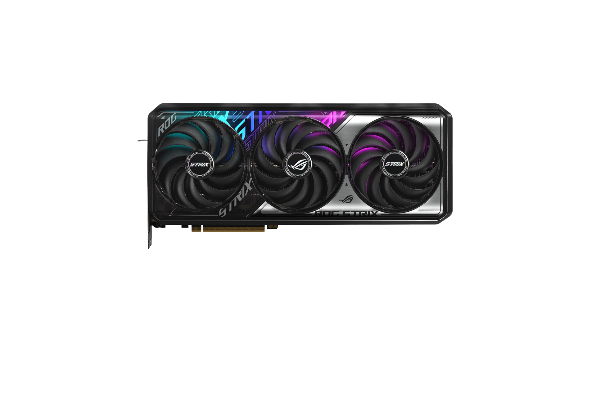Placa gráfica ROG STRIX com três ventoinhas e iluminação RGB