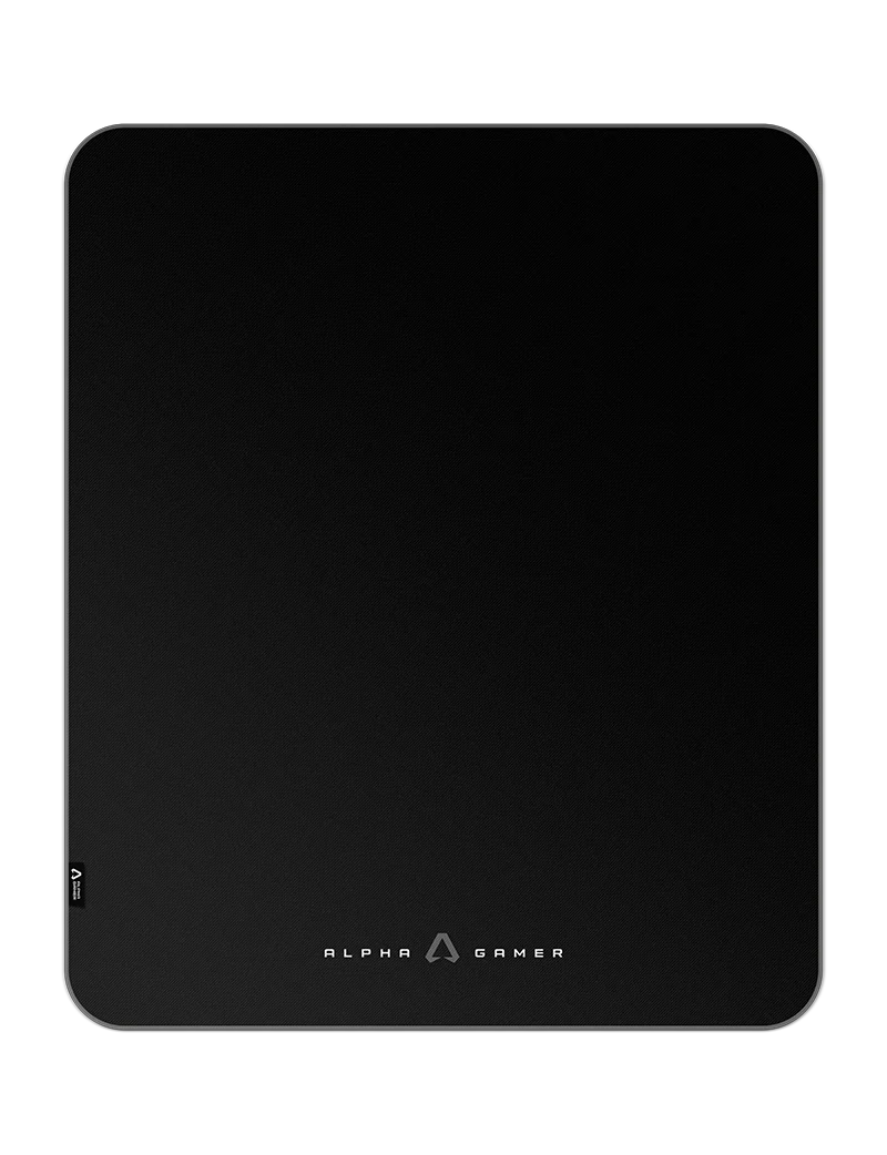 Tapete de rato preto quadrado com logótipo branco Alpha Gamer