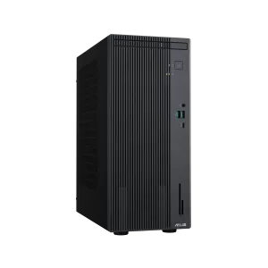 Computador de secretária ASUS preta em torre com portas USB e leitor de cartões