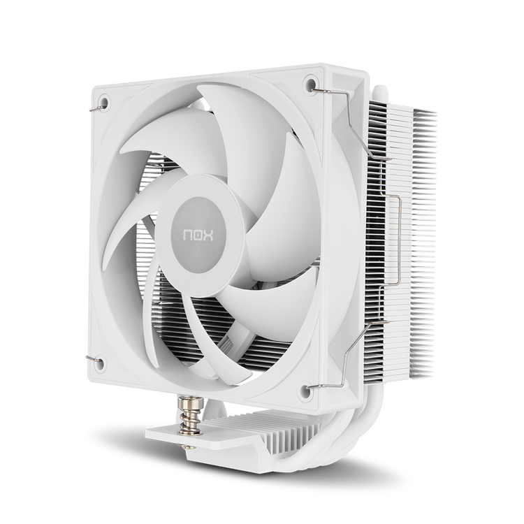 Ventoinha de refrigeração branca para computador com marca NOX e lâminas curvas
