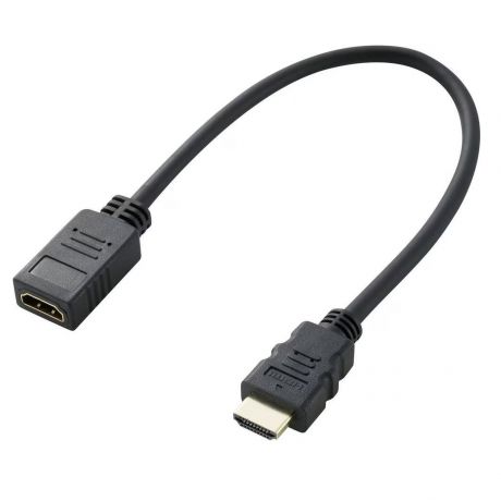 Cabo adaptador HDMI preto com conector macho e fêmea