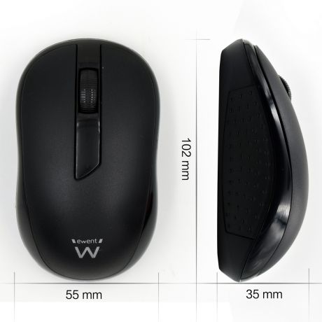 Rato sem fios preto com receptor USB e tampa de baterias removida