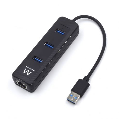 HUB USB 3.2 Gen 1, 3 Portas USB A + Porta Rede Gigabit, Alimentação USB