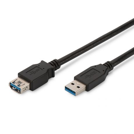 Cabo USB 3.0 preto com conector macho tipo A e fêmea tipo A