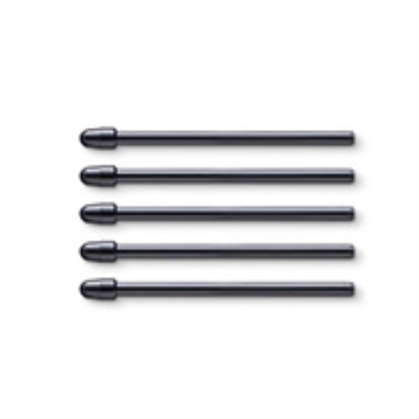 Cinco antenas pretas cilíndricas alinhadas sobre fundo branco