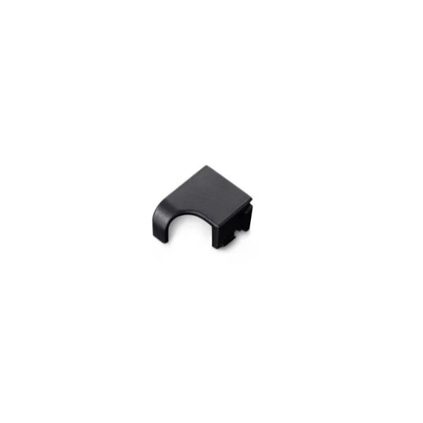 Peça plástica preta em forma de U sobre fundo branco