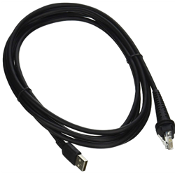 Cabo USB preto com uma extremidade USB tipo A e outra RJ45