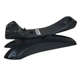 Suporte de plástico preto curvado com etiqueta branca e código de barras