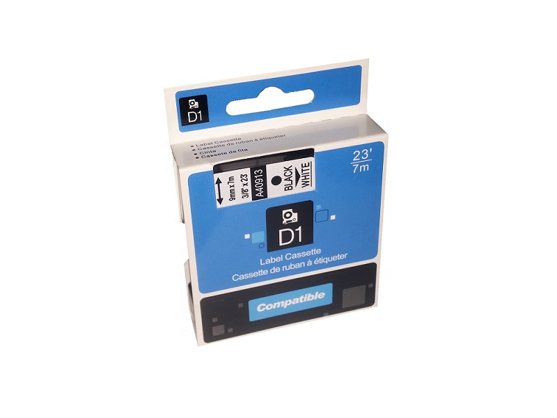 Fita Gravação Compatível p/ Dymo 9mm x 7m Preto/Branco (40913)