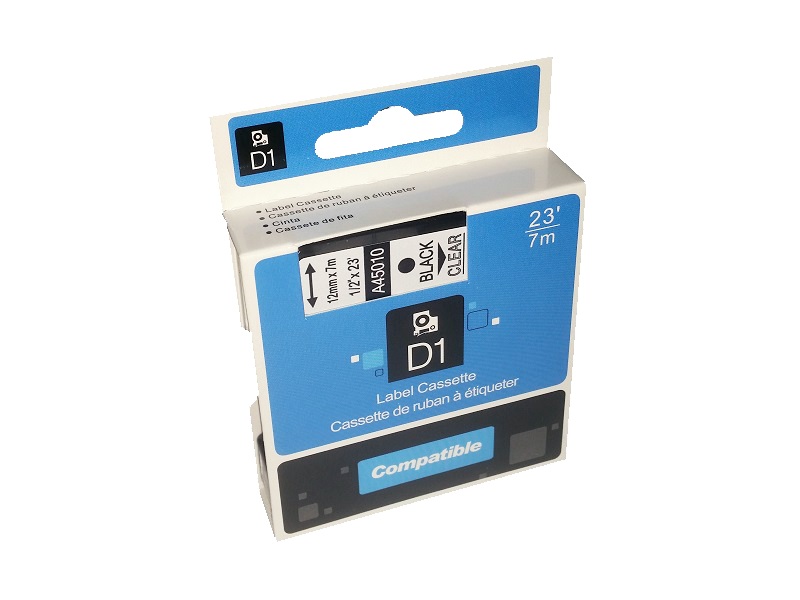 Fita Gravação Compatível p/ Dymo 12mm x 7m Transparente/Preto (45010)