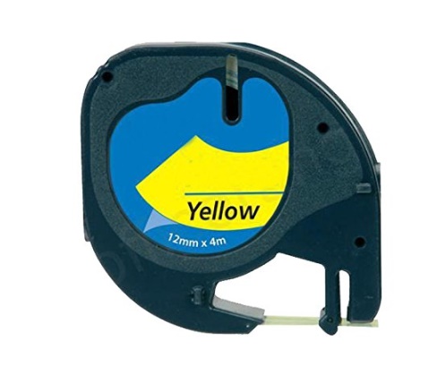 Fita Gravação Compatível p/ Dymo Letratag 2000/Letratag LT100 Series/Letratag LT100H/Letratag LT100T/Letratag QX50/Letratag XM; Letratag XR - Preto/Amarelo (91202) 12mm x 4mts.
