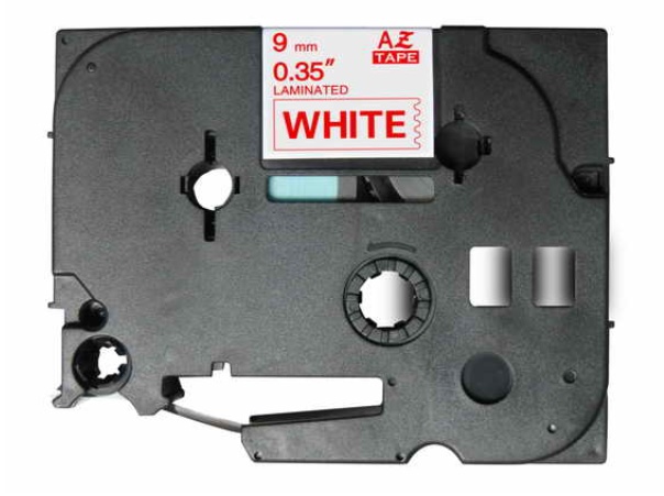 Fita Compatível p/ Gravação p/ Brother P-Touch 1000/200/220/300/310/340c/350/540c/550/1250/1200/18xx/2450DX/2460/ 2480/2420PC/2500PC/3600/9200PC/9200DX/9400/9500/1010/1280DT/2100VP/2430/2700VP/7500VP/7600VP - Branco/Vermelho 9mmx8mts