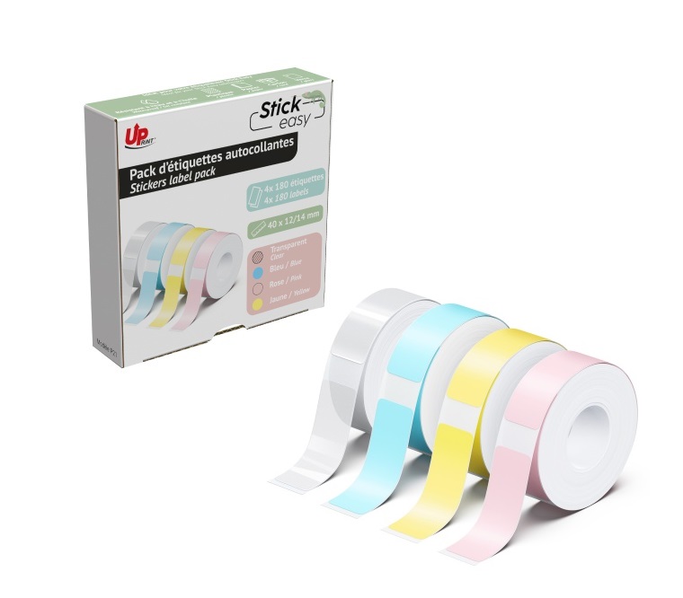 Etiquetas Adesivas Stick Easy UP21 4x180 (12/14)x40MM Pack 4Transparente/Azul/Rosa/Amarelo
