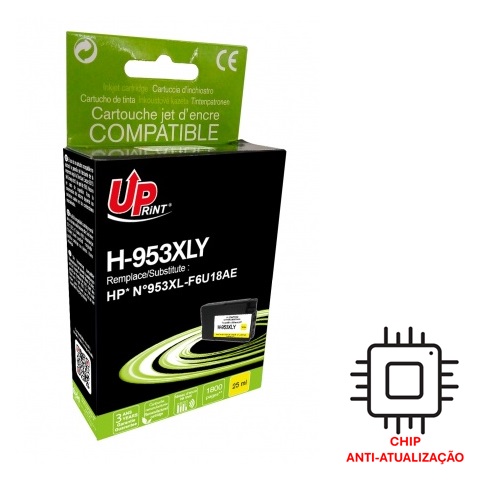 Tinteiro Compatível p/ HP OfficeJet Pro 8700/8710/8711/8715/8716/8717/8718/8719/8720/8721/8725/8728/8730/8731/8740 (F6U18A) Nº953XL - Amarelo (Alta Capacidade) / Capacidade: ~1800 Páginas (25 ml) / Código de Barras: 3584770904395
