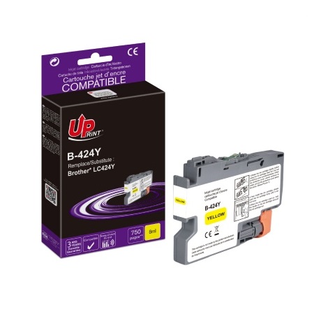 Tinteiro amarelo compatível B-424Y da Up Print com embalagem preta e roxa