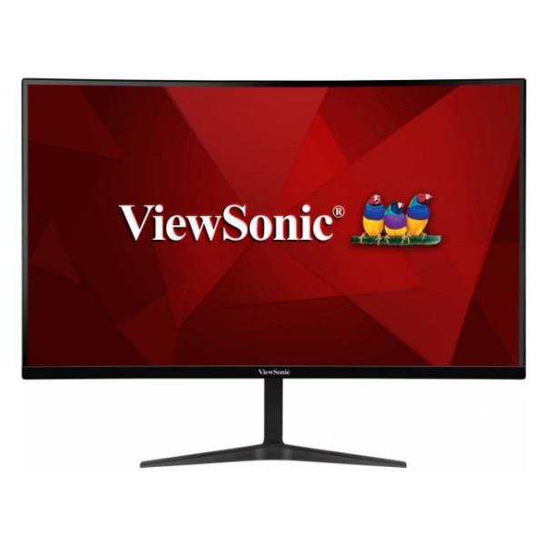 Monitor ViewSonic preto com ecrã vermelho e logótipo com três pássaros